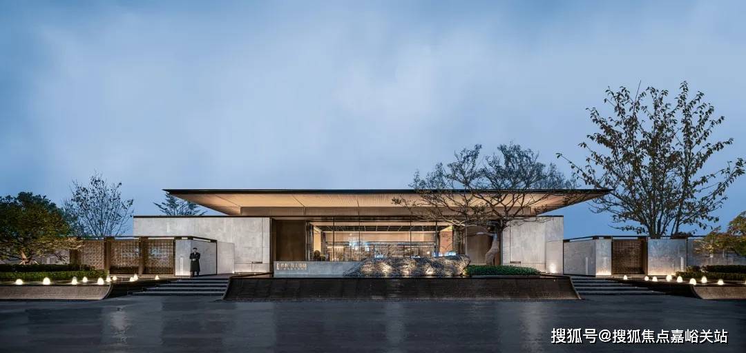 在门头及入户大堂的用材上:单元门头整体和小区入口大堂呼应,两侧采用大象灰石材哑光面和拉槽面,搭配定制龙鳞纹金属网,带给业主的出入间的仕第门庭礼序,呈现了现代东方的城市风骨,尊贵感油然而生。