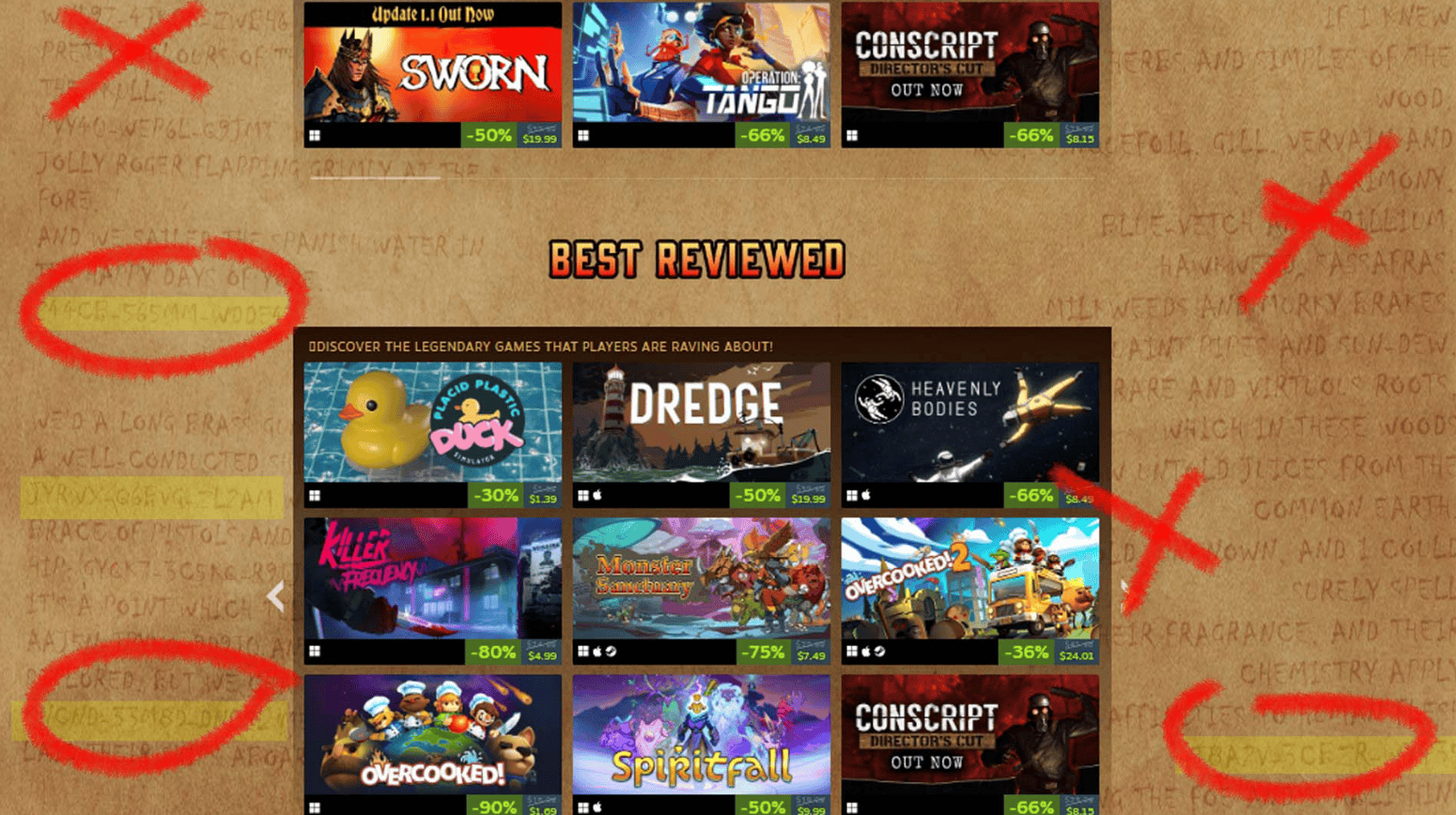 最大的优惠是隐藏彩蛋,你将在活动主页看到一个海盗图片的背景,上面布满金银财宝。向下滚动,仔细查看促销信息,你会发现一些写在类似羊皮纸上的淡淡文字。这些文字中,你还会注意到一些字母数字的代码,它们实际上是Team 17旗下不同游戏的激活码。