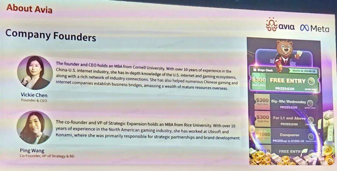 AviaGames本身是一家成立于硅谷、在美国经营的公司。不过有了标题和上文的铺垫,想必大家也已经猜到了——创始人Vickie Chen是一名华人女性,曾担任搜狐畅游北美总经理,在游戏行业工作多年。AviaGames也有着大量中国员工,包括在北京建有全资子公司,负责了大部分产品的开发工作。